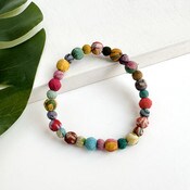 Colorful, subtly alternating round Kantha beads form this classic strand. Perfect for layering with other styles, or worn on its own for a minimalist look. Made from repurposed Kantha textiles; colors and patterns will vary.
