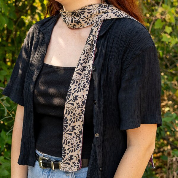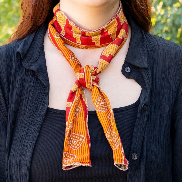 This colorful, versatile stole is handmade using repurposed sari pieces. Each piece is made from recycled Sari textiles, so colors and patterns are all one-of-a-kind and will vary. Order in multiples for a vibrant display. Measures 59″ long and 5″ wide. Sustainably handmade by women artisans in India.